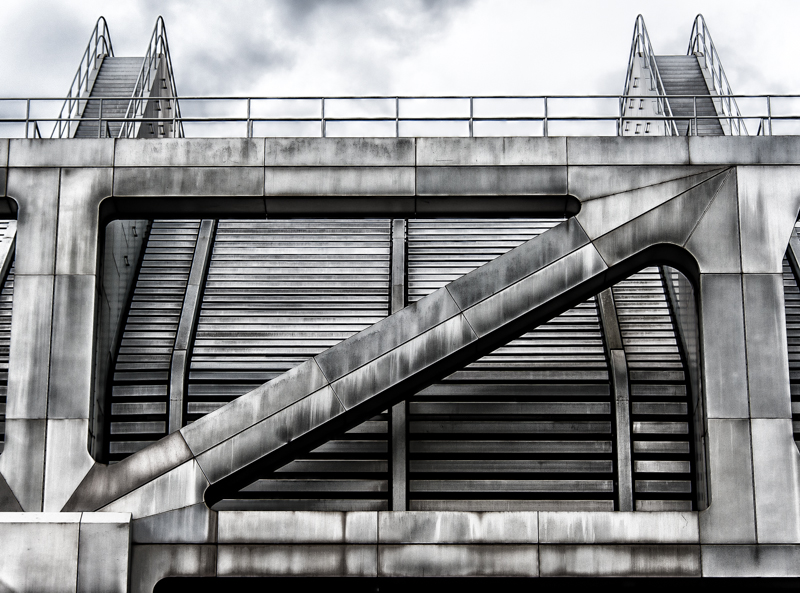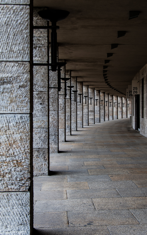 Der Regen hat aufgehört, ansonsten ist der heutige Donnerstag genau so kalt und unfreundlich wie gestern. Das hält uns aber nicht auf, die Ausrüstung zusammen zu packen und unsere Fotopirsch durch Berlin fort zu führen. Unser erstes Ziel ist das Berliner Olympiastadion. Passend zum Tag schreiben wir heute das Motto Symmetrie (wegen des Olympiastadions), Schwarz/Weiß (wegen des komplett bewölkten Wetters) und Experimente aus. Somit sind unsere Bilder des Olympiastadions keine Bilder, wie sie ansonsten jeder von den Postkarten kennt.