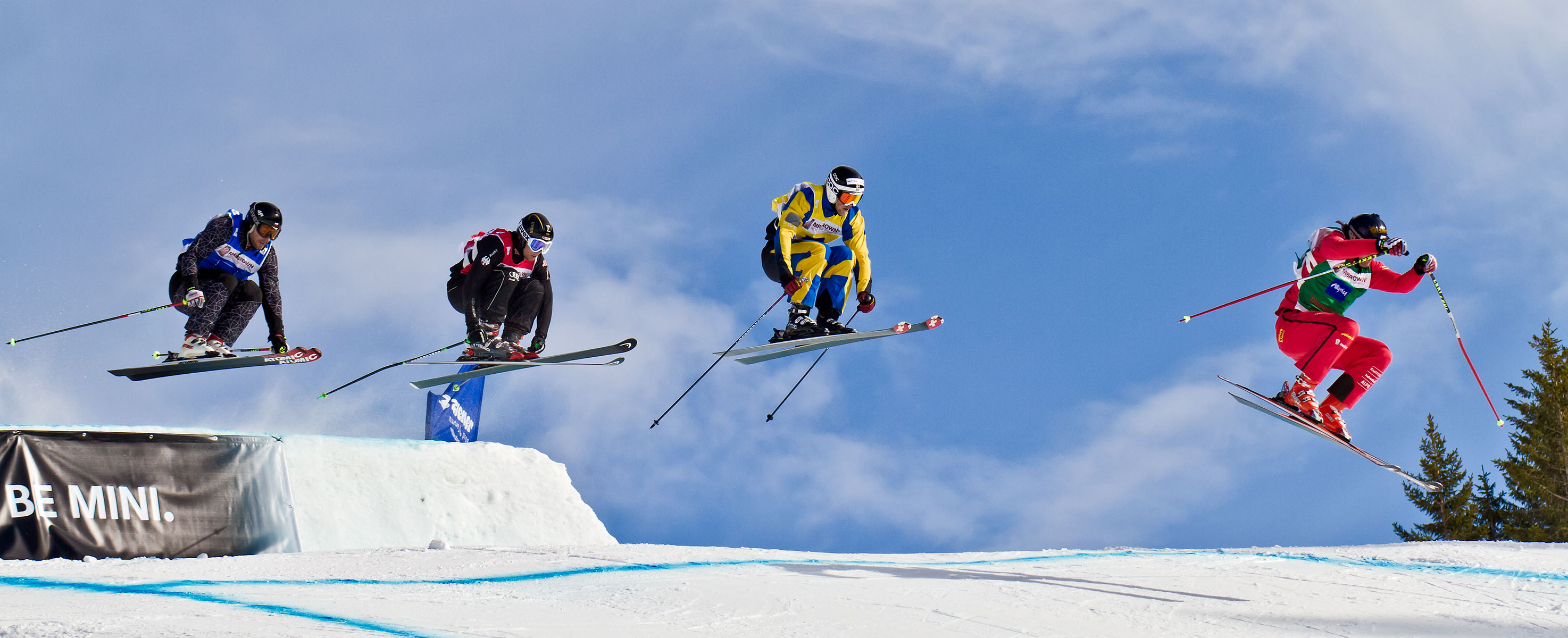 Bei unserem letzten Clubabend machte mich mein Fotofreund und Clubkamerad Bernd Passauer auf ein Wintersportevent in Grasgehren aufmerksam. Dort sollte am 29.01.2011 der 1. Weltcup im Skicross stattfinden. Skicross ist ein spektakulärer Wintersport, bei dem 4 Rennläufer(innen) gleichzeitig auf einer mit Buckeln und Steilkurven versehenen Piste gegeneinander antreten in sogenannten „Heats“. Die ersten Beiden im Ziel kommen in die nächste Runde – das geht dann so weiter bis ins Finale, in dem die Sieger ermittelt werden. Hierbei kann es auch zu Körperkontakten kommen, so dass es mitunter auch etwas unfair zugehen kann. Seit der letzten Olympiade ist der Sport auch olympisch – alles in allem also ein fotografisch vielversprechendes Event.